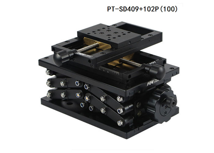 兩個(gè)手動(dòng)平移臺(tái)PT-SD102P ,一個(gè)手動(dòng)升降臺(tái)PT-SD409 組合而成,X行程(50MM)Y行程(50MM)Z行程(120MM)。