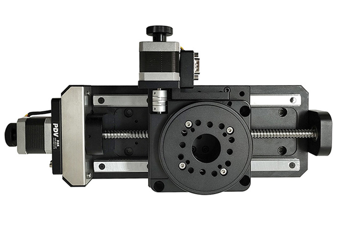 電動旋轉(zhuǎn)臺PX110-100、電動平移臺PT-GD140G組成二維電動位移臺。電動平移臺PT-GD140G有多種行程規(guī)格可供選擇。